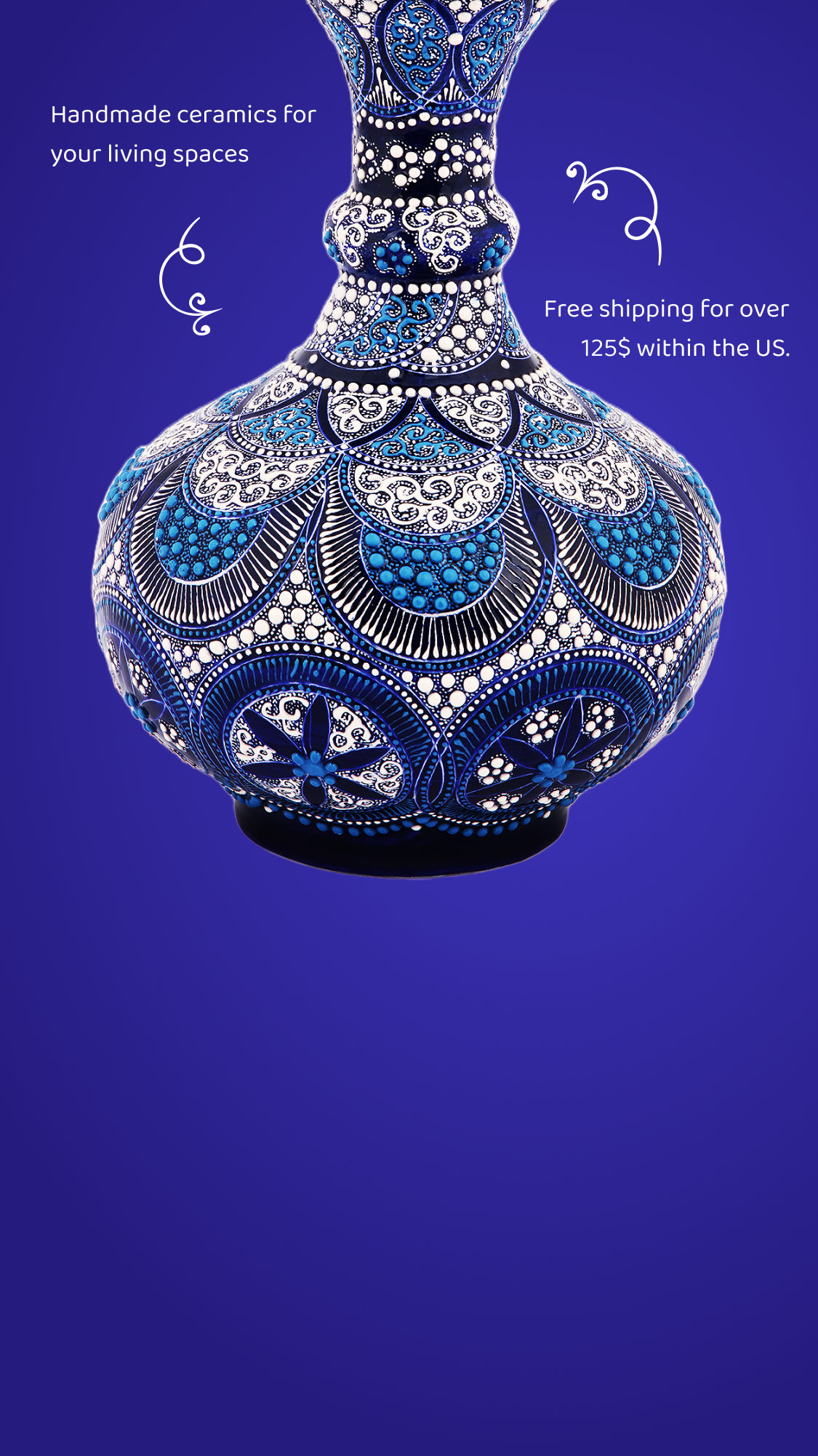 Add a touch of elegance and sophistication to your home décor with our exquisite blue, handmade ceramic vase. Expertly crafted by skilled artisans, this vase is not just a decorative piece, but also highly functional.Unique design of this vase make it a true work of art, perfect for adding a chic touch to any room. The high-quality ceramic material ensures its durability, and the intricate lines adds an extra layer of charm and elegance.This versatile vase is perfect for displaying fresh flowers or simply as a statement piece on its own. Its size makes it ideal for displaying on a tabletop, mantel, or shelf, adding a pop of color to your home décor.The beauty of this handmade vase makes it an ideal gift for any occasion, from birthdays to housewarming parties. Its unique and elegant design is sure to impress your loved ones, making it a thoughtful and memorable present.Bring a touch of elegance to your home and surprise your loved ones with this beautiful and functional handmade ceramic vase. Order now and experience the beauty of handcrafted quality.Regular price $49.99Sale price $49.99 Regular priceUnit price per -