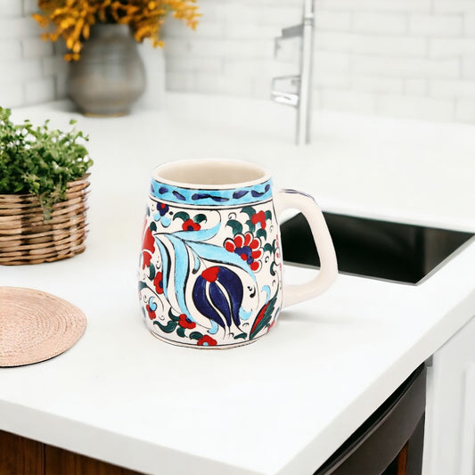 The "Blossom Harmony Handmade Ceramic Mug" is a delightful expression of craftsmanship, featuring a radiant floral design in bold reds and blues. Each mug is a unique piece of art, hand-painted by artisans who bring the charm of traditional floral motifs into the modern day. Perfect for your morning brew or as a standout piece in your mug collection, this item offers a fusion of elegance and utility, ideal for those who appreciate the beauty of handcrafted ceramics.Regular price $27.00Sale price $27.00 Regular price $29.99Unit price perSale -