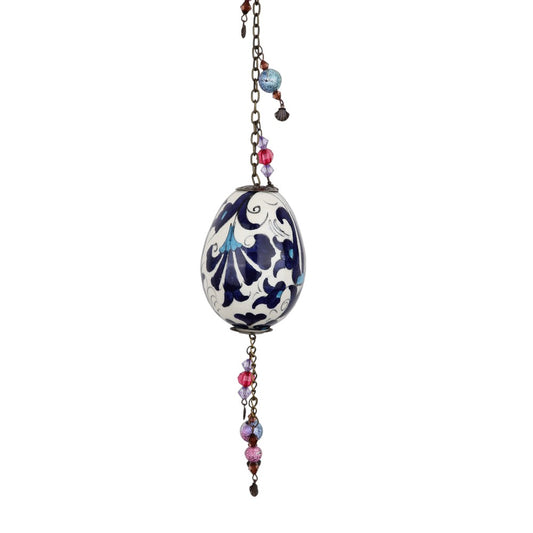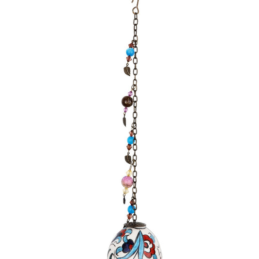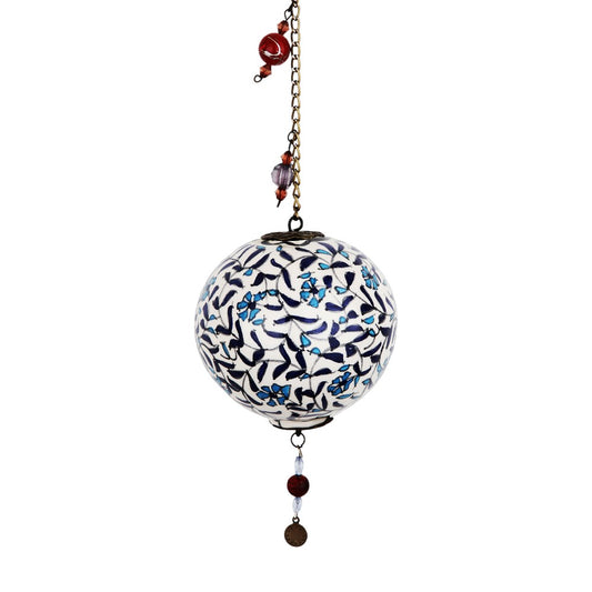 Introducing the "Ottoman Floral Sphere Ornament," a spherical ceramic decoration that brings a touch of Ottoman elegance to your home. It features a floral pattern in classic red, blue, and black hues on a white background. A chain adorned with coordinating beads complements the design, perfect for hanging in a window or on a patio.Regular price $39.99Sale price $39.99 Regular priceUnit price per -