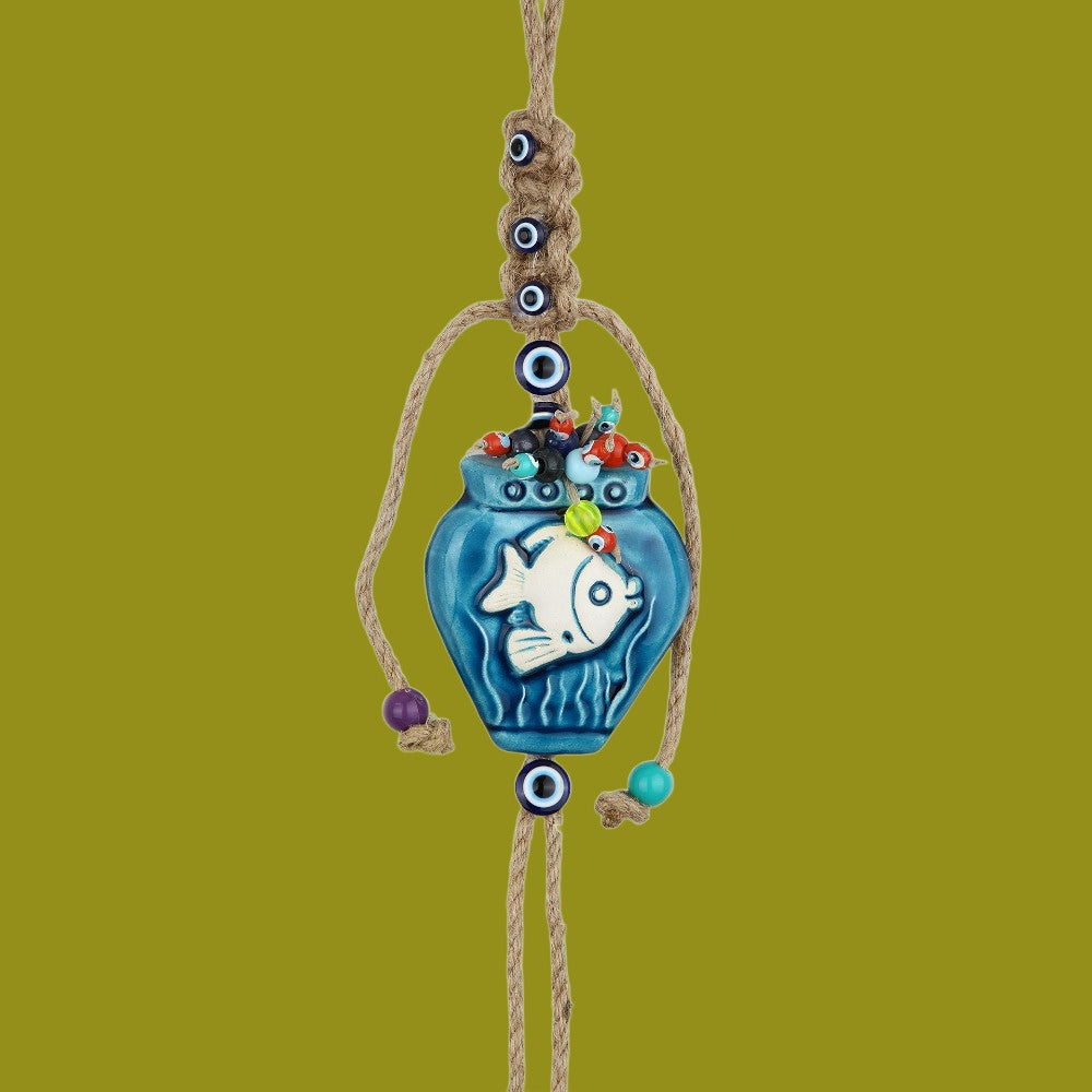 Adorn your space with the "Aquatic Serenity Fish Ornament," a ceramic creation that captures the tranquility of the ocean. This unique piece, featuring a fish motif amidst a sea-blue backdrop, is perfect for coastal-t...
