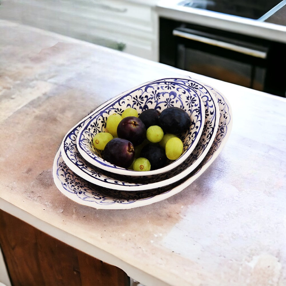 Embrace the charm of artisanal craftsmanship with the "Blue Flower Festival Ceramic Bowl." This handcrafted beauty displays an exquisite pattern of blue florals, each stroke reflecting a legacy of traditional artistry...