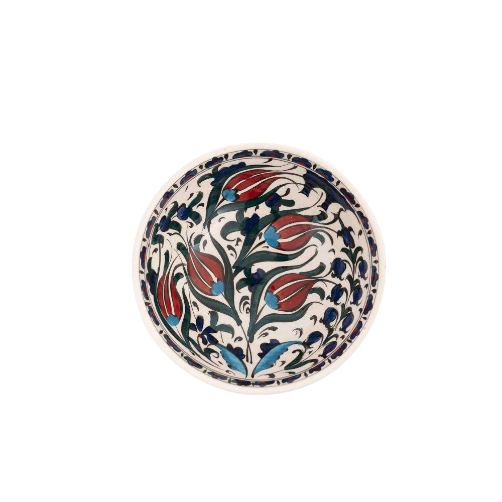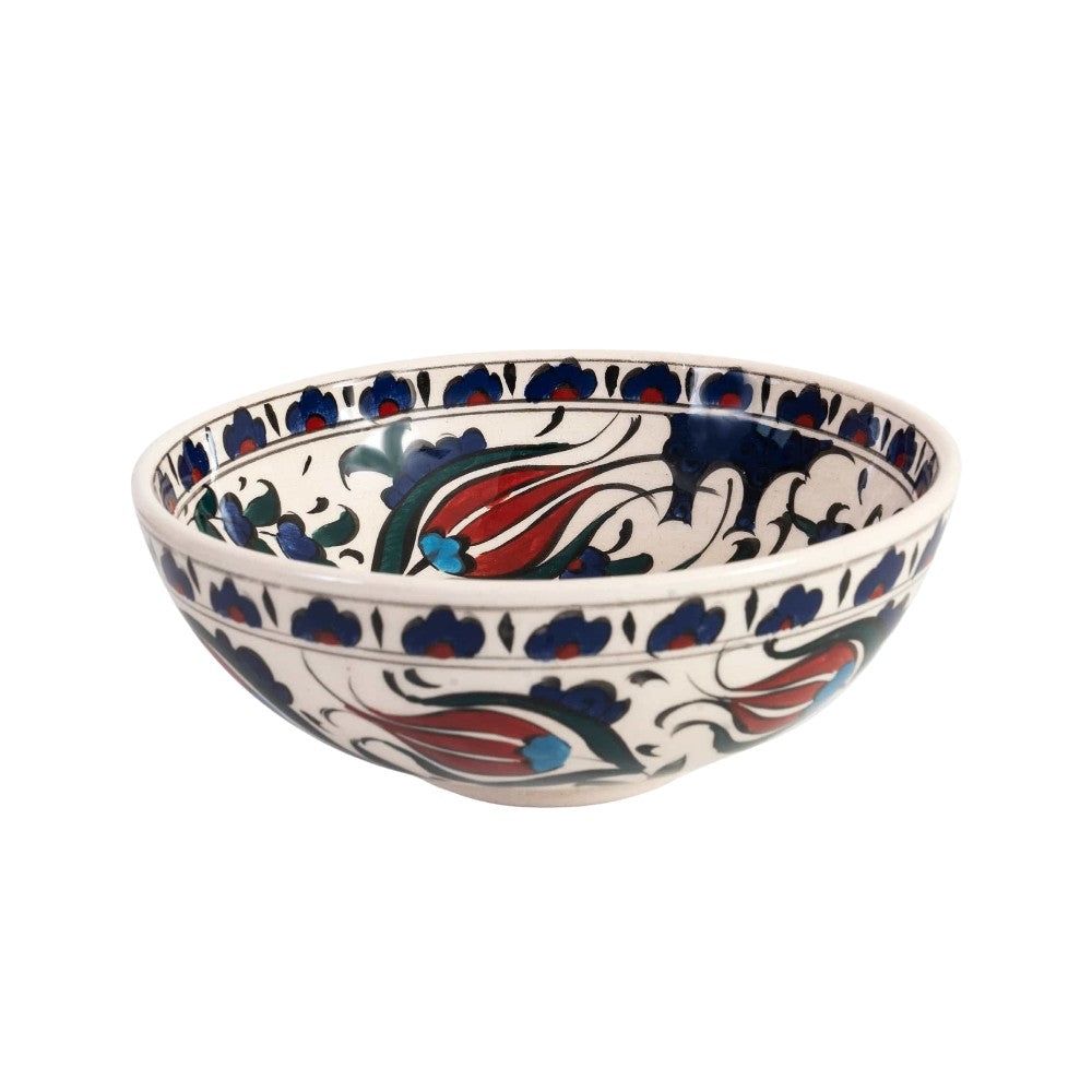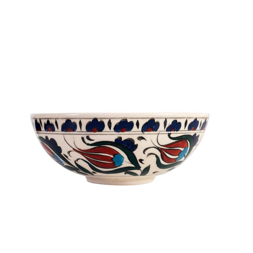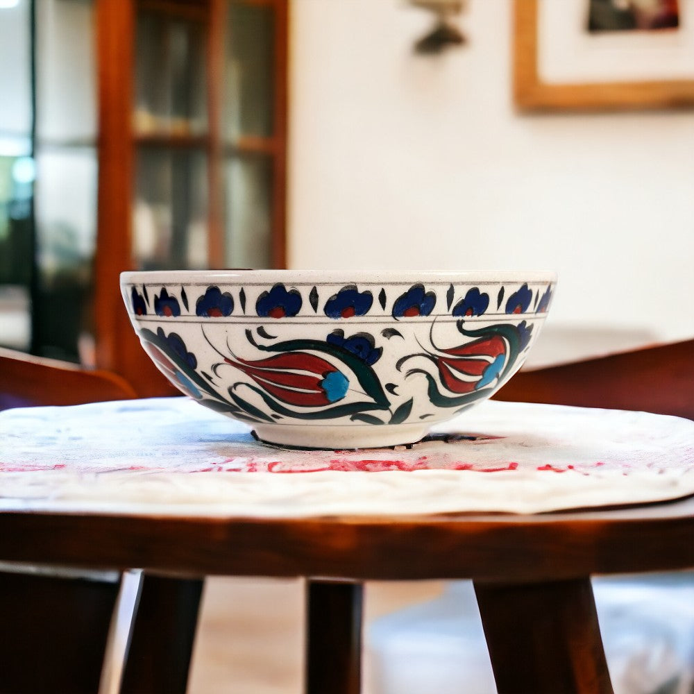 The "Tulip Swirl Artisan Bowl" is a handcrafted ceramic piece, rich with a swirling pattern of tulips in a dance of reds and blues, offset by the timeless elegance of the creamy ceramic backdrop. This bowl is perfect ...