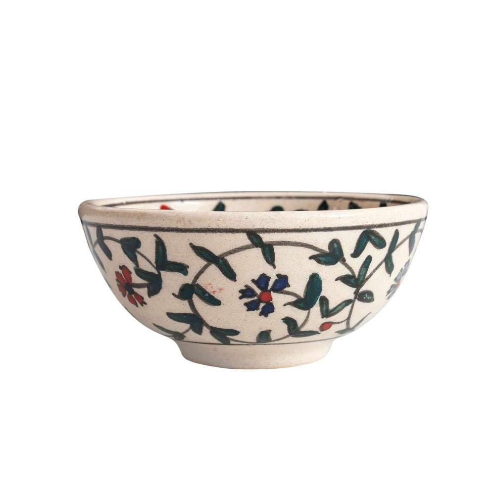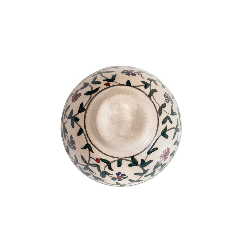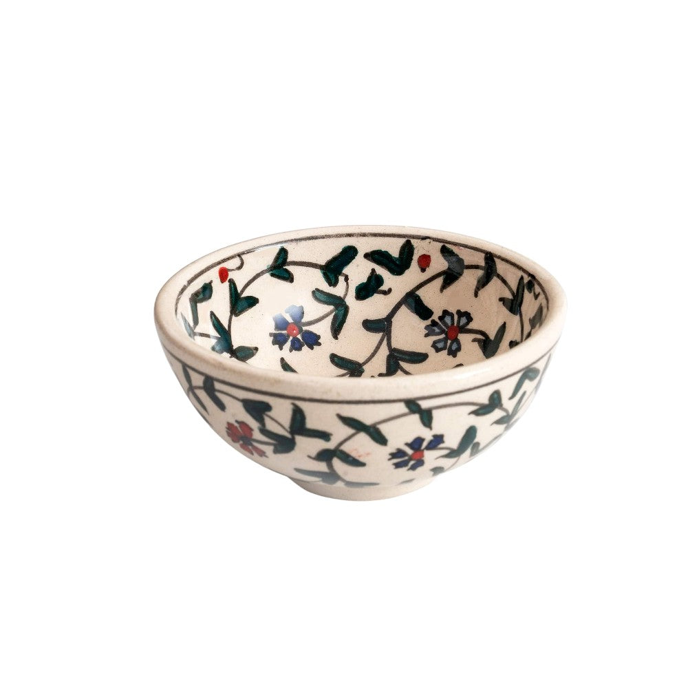 Introducing the "Verdant Meadow Hand-painted Bowl," a delicate 3-inch ceramic bowl adorned with a graceful pattern of green foliage and tiny blue and red flowers. This bowl is a charming addition to any table setting ...