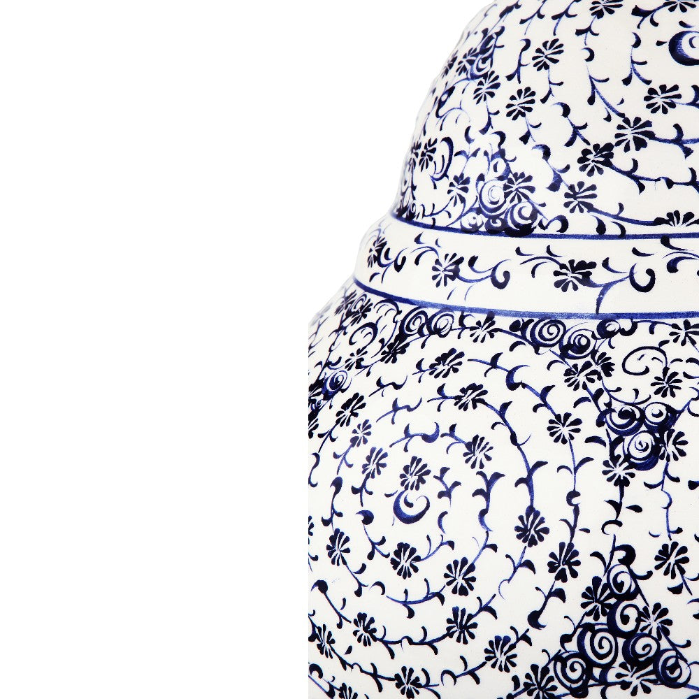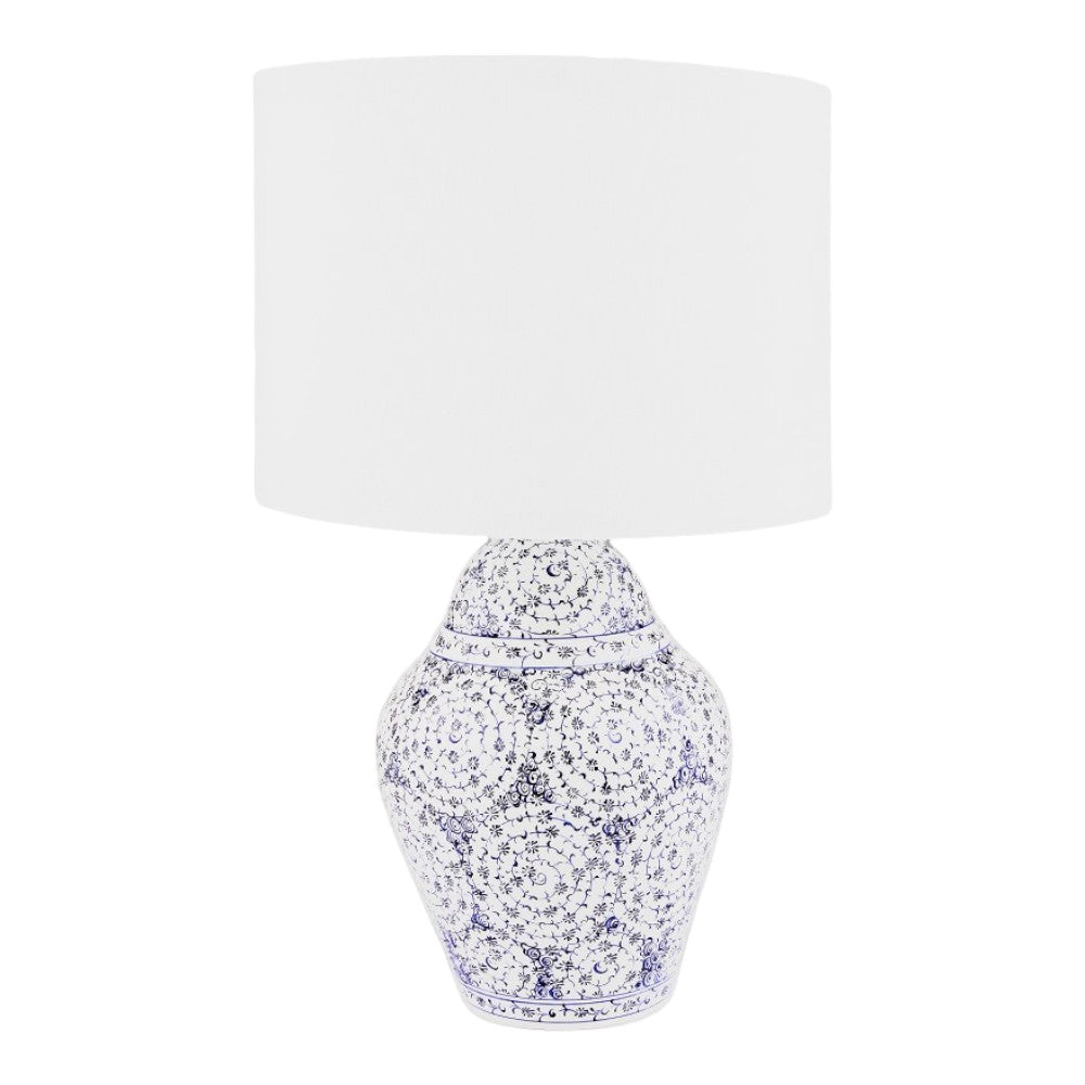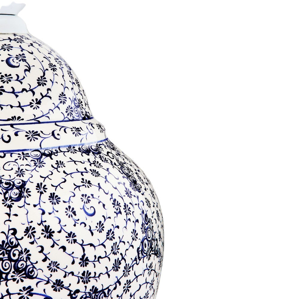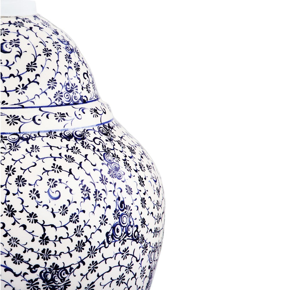 "Enchant your living space with the 'Cobalt Floral Ceramic Lamp,' a harmonious blend of traditional craftsmanship and contemporary design. This elegant lamp features a white ceramic base adorned with detailed cobalt b...