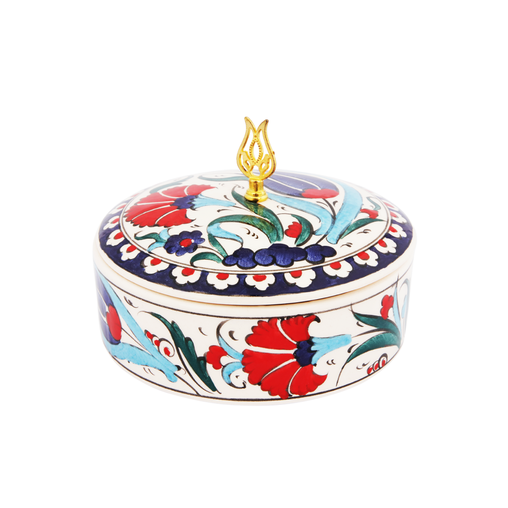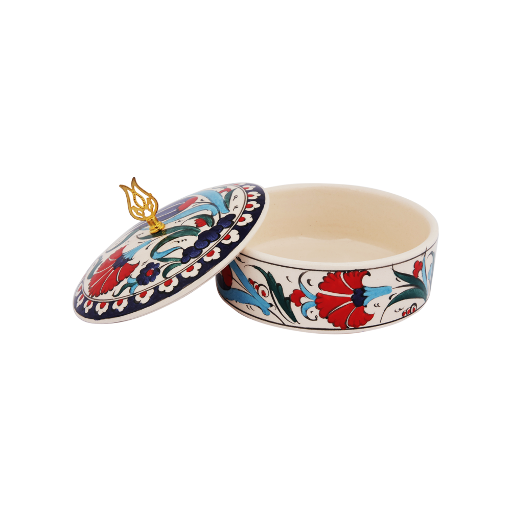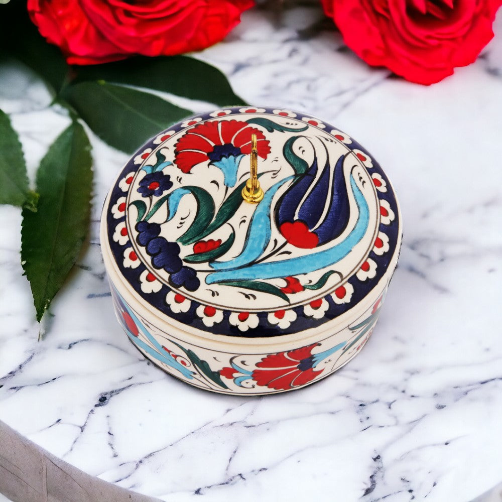 Delight in the exquisite craftsmanship of our 'Anatolian Splendor Ceramic Box', a treasure inspired by the rich tapestry of Anatolian art. The vibrantly hand-painted florals in bold reds and blues flourish across the ...