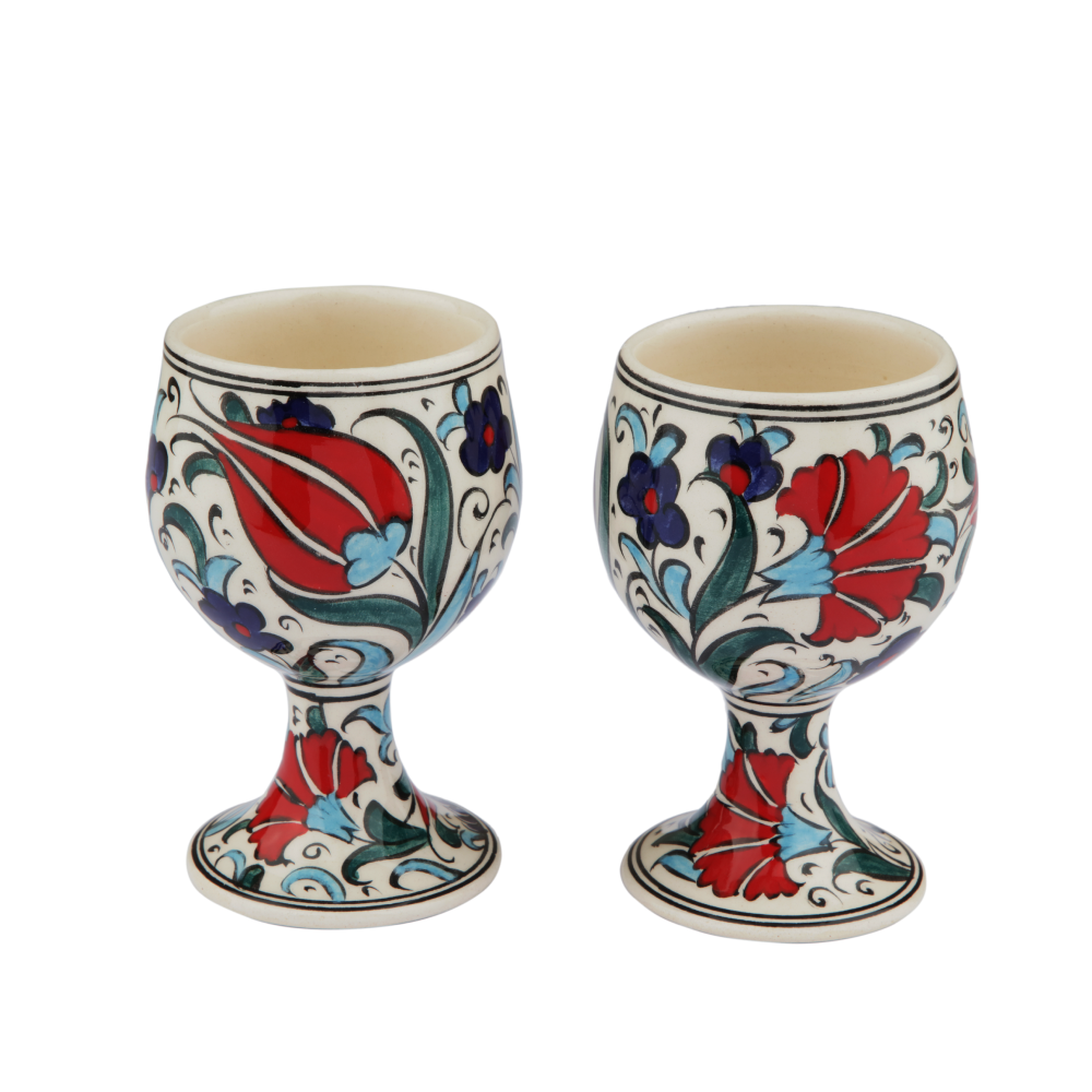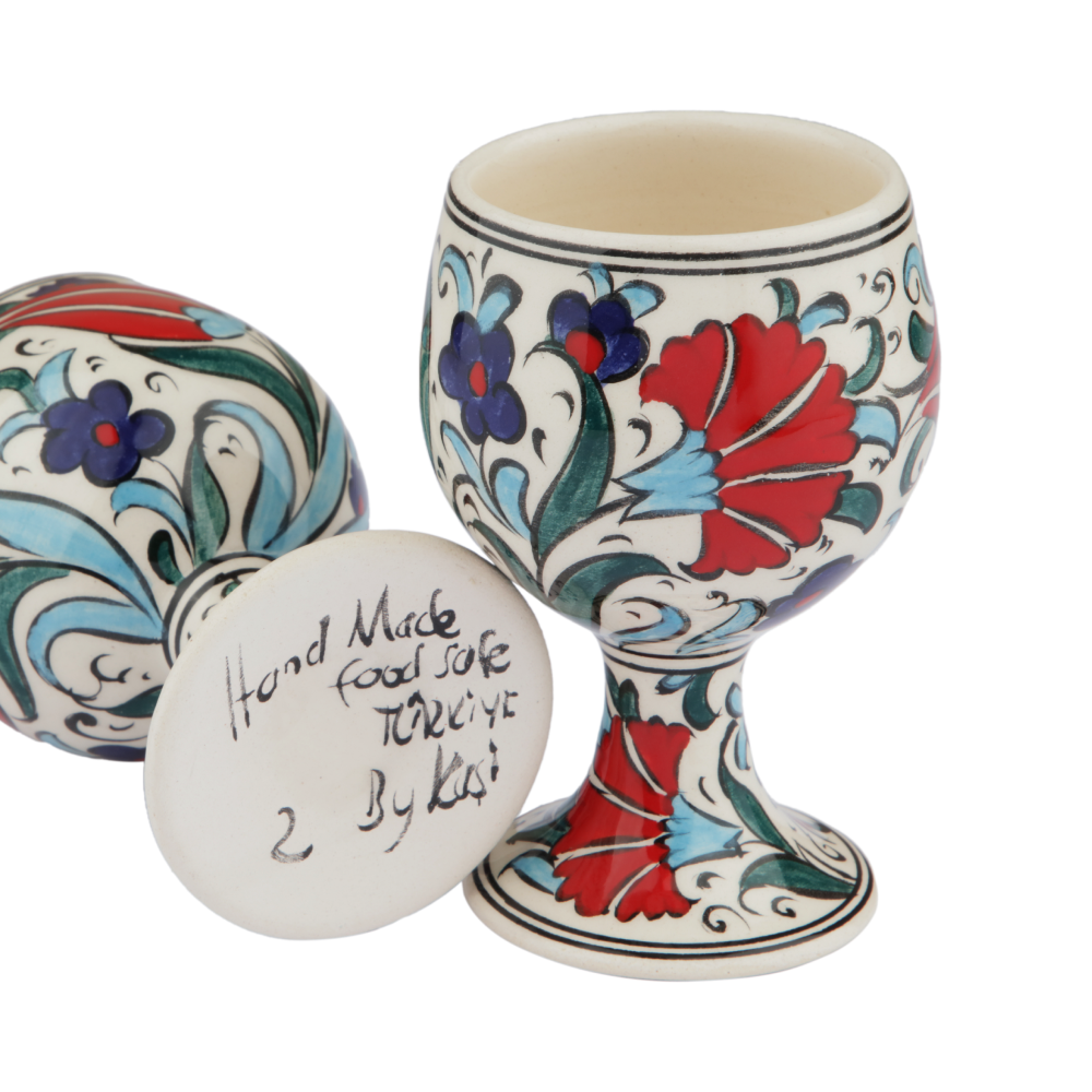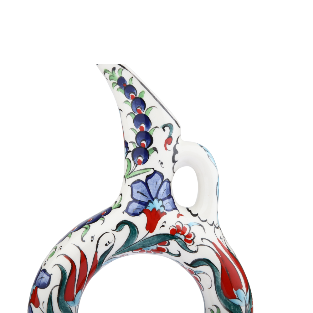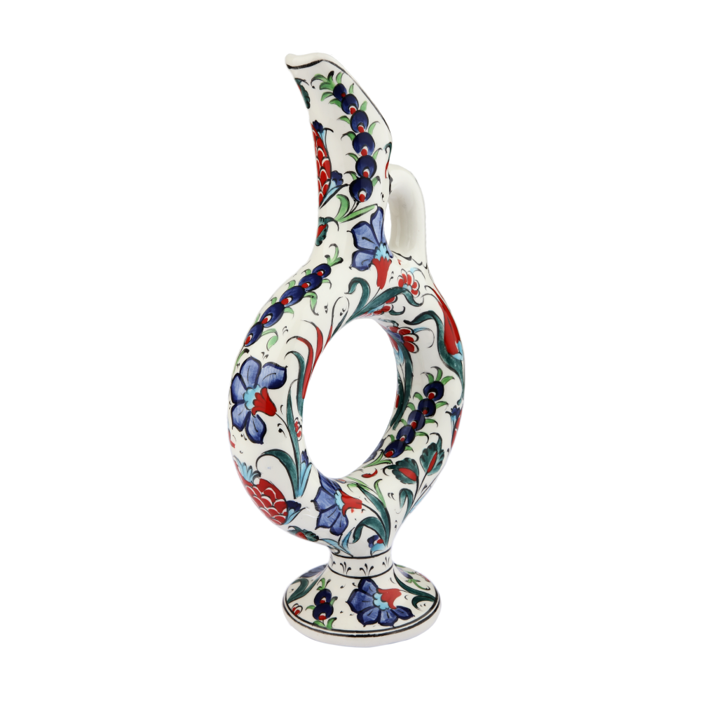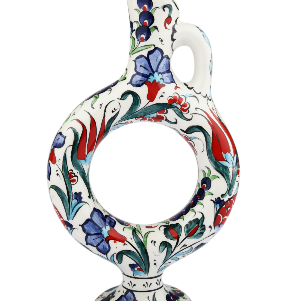 This unique Hittite Vase Set draws inspiration from the rich heritage of Anatolian civilizations. The set features a striking pourer and two goblets, each adorned with traditional motifs in vibrant red, blue, and turq...