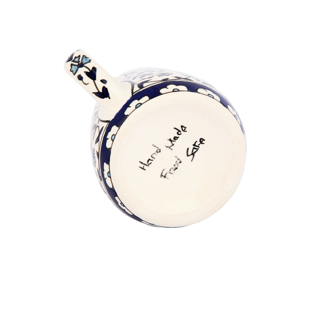 The "Midnight Flora Handmade Ceramic Mug" captures the essence of a starlit garden with its deep blue botanical patterns gracefully sprawling across a soft ivory background. Each mug is a testament to the traditional ...