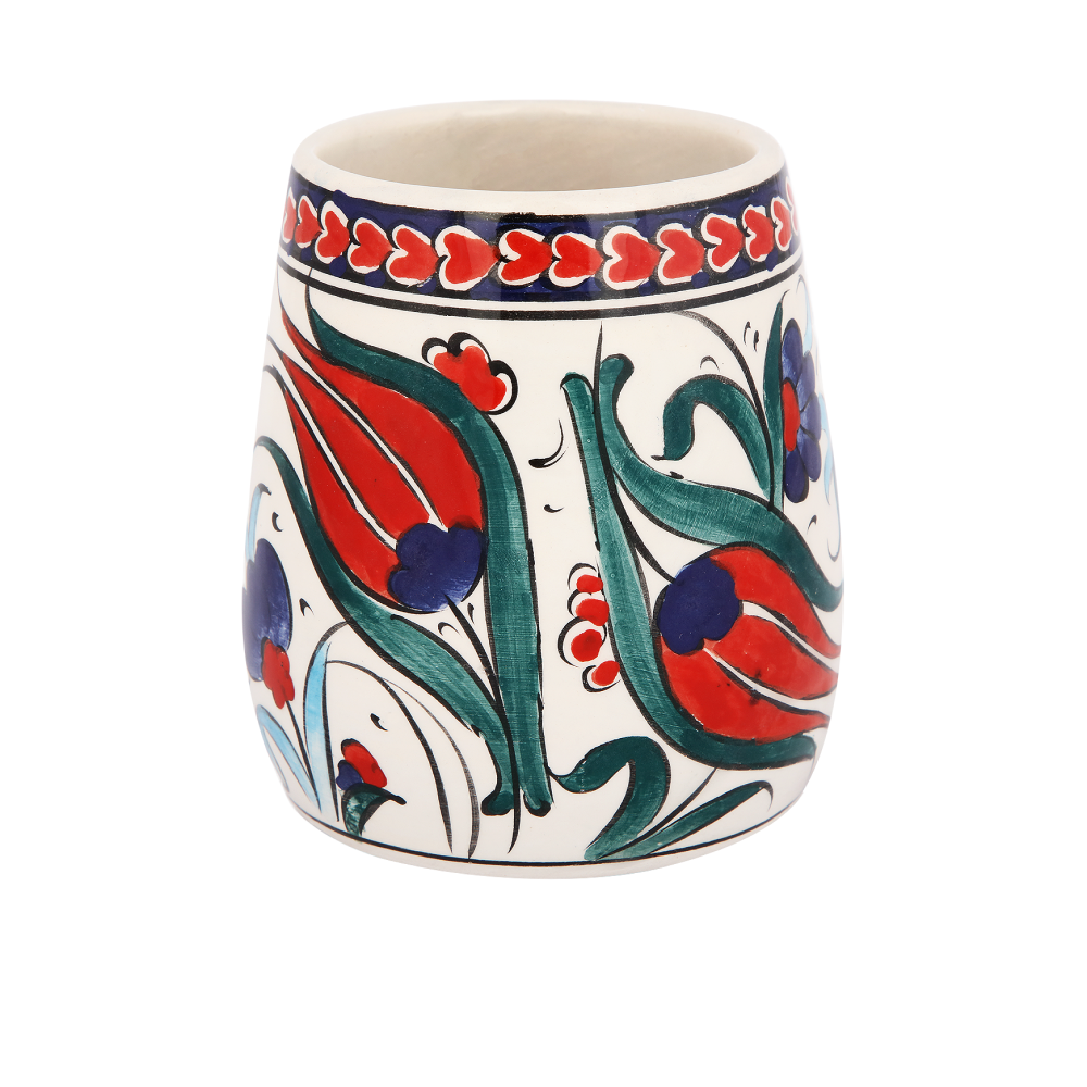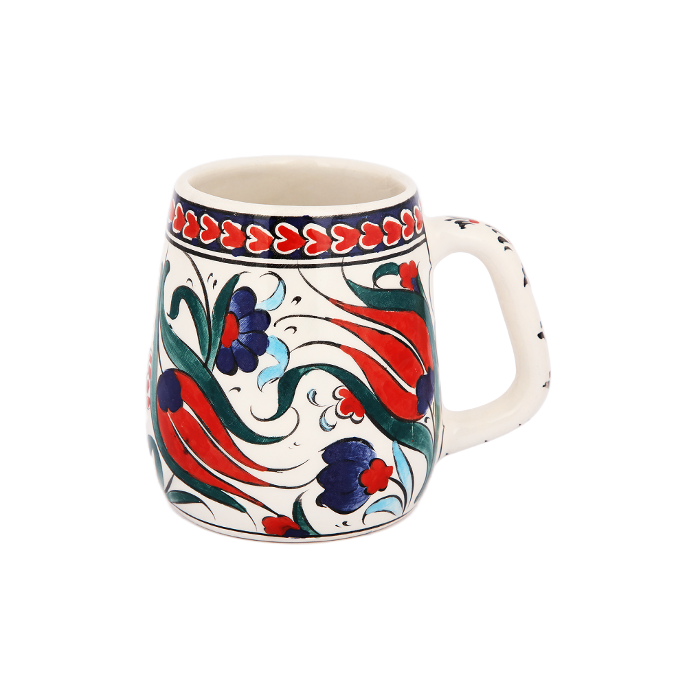 The "Vivid Swirl Handmade Ceramic Mug" is a true celebration of color and craftsmanship. The flowing swirls and bold floral patterns, hand-painted in a striking palette of red and blue, bring a dash of vibrancy to you...