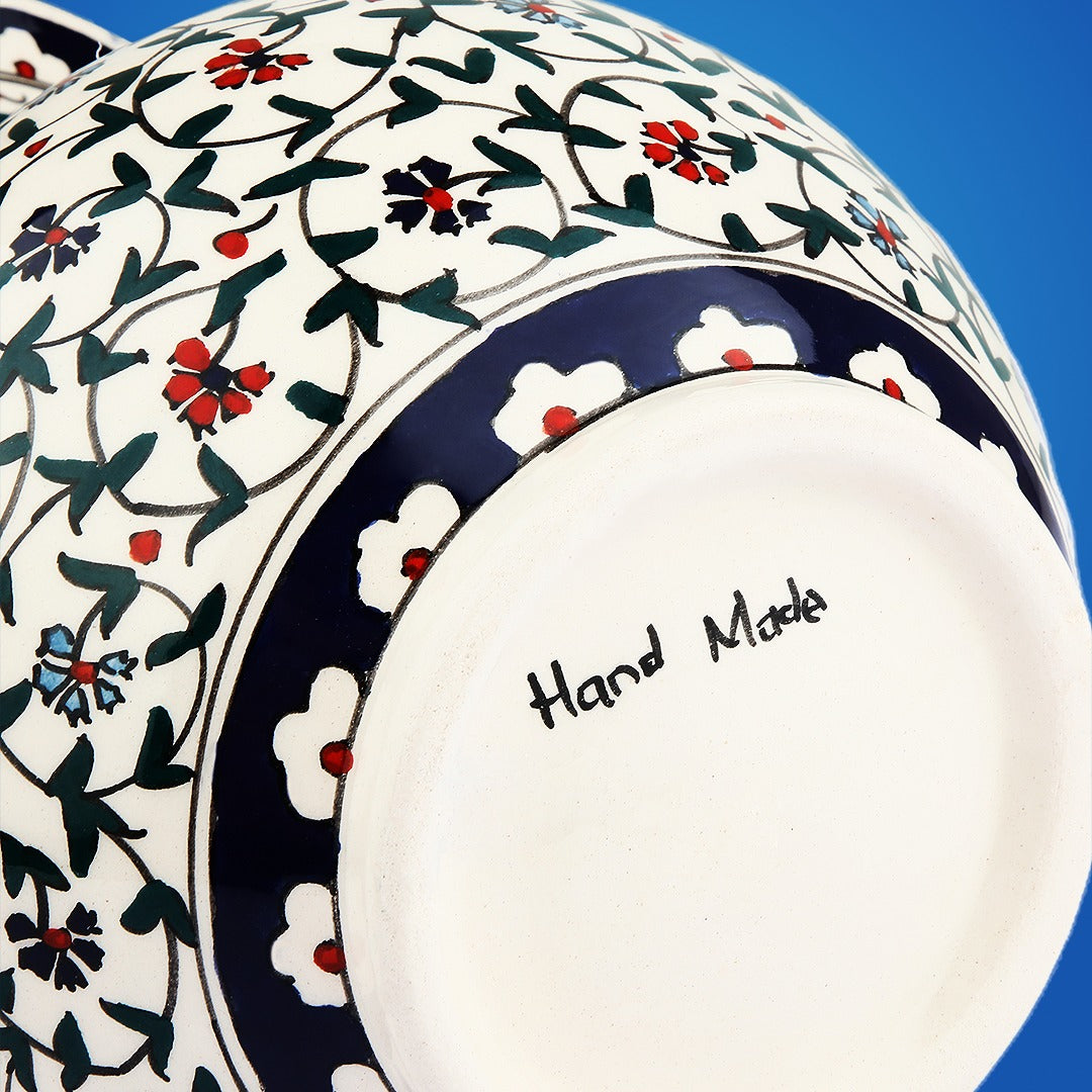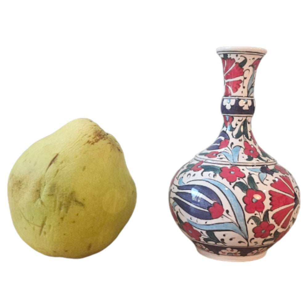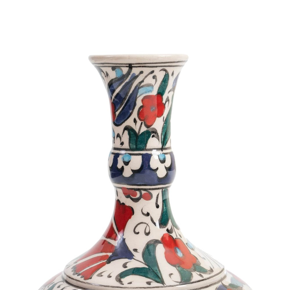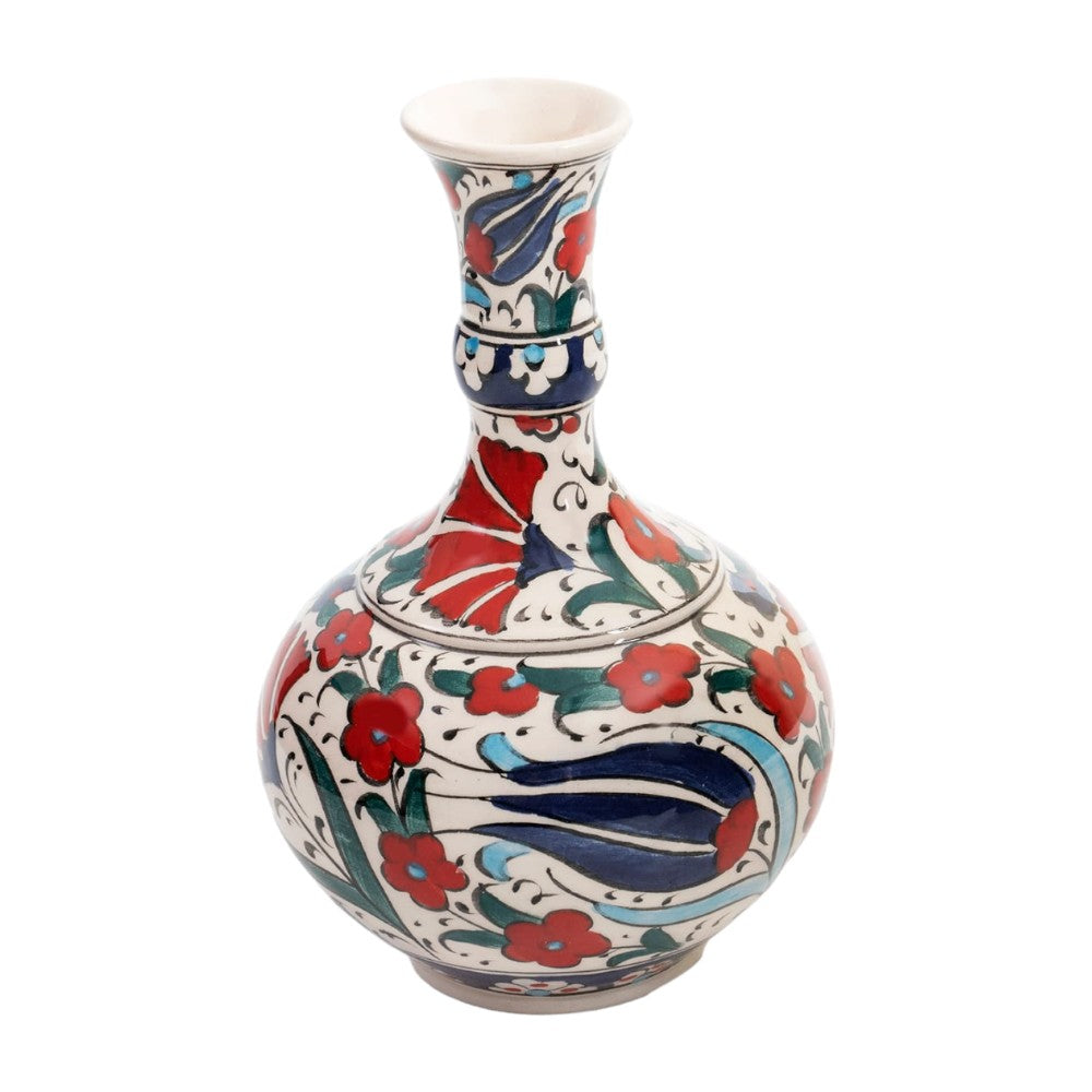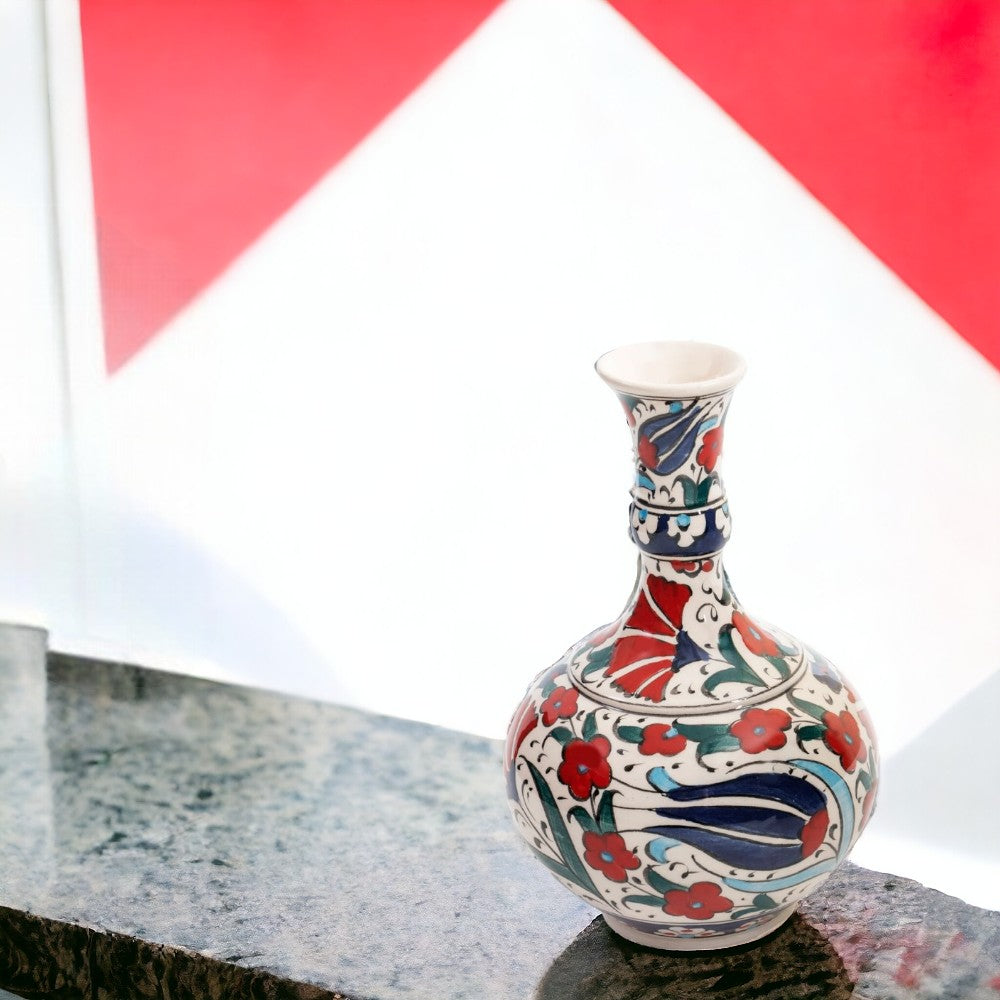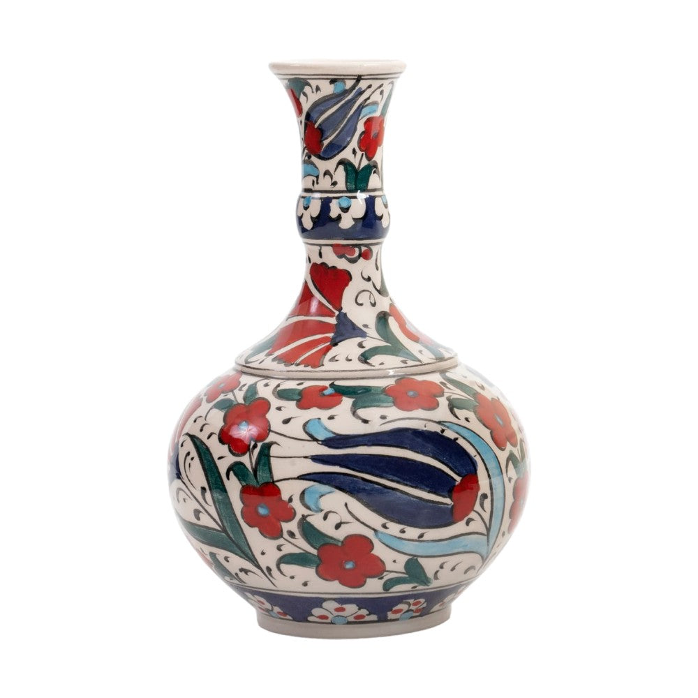 Add a pop of color and elegance to your home decor with our handmade ceramic vase. With its stunning red floral and blue tulip design, this vase is a true work of art that will elevate the look of any room.Crafted by ...