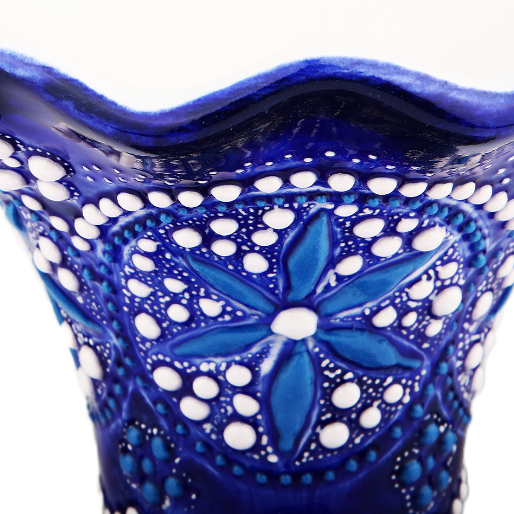 Discover the 'Azure Elegance Vase', a masterpiece of handcrafted beauty. Its rich blue and white mandala pattern radiates sophistication, while the durable ceramic build promises lasting allure. Perfect for minimalist...