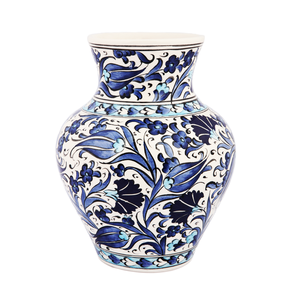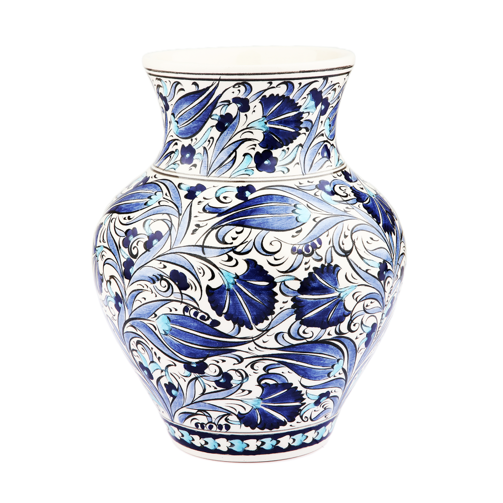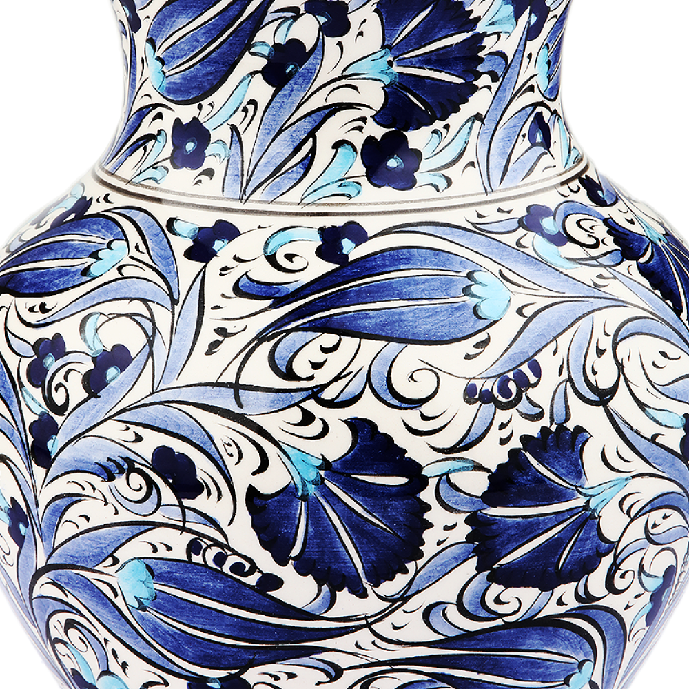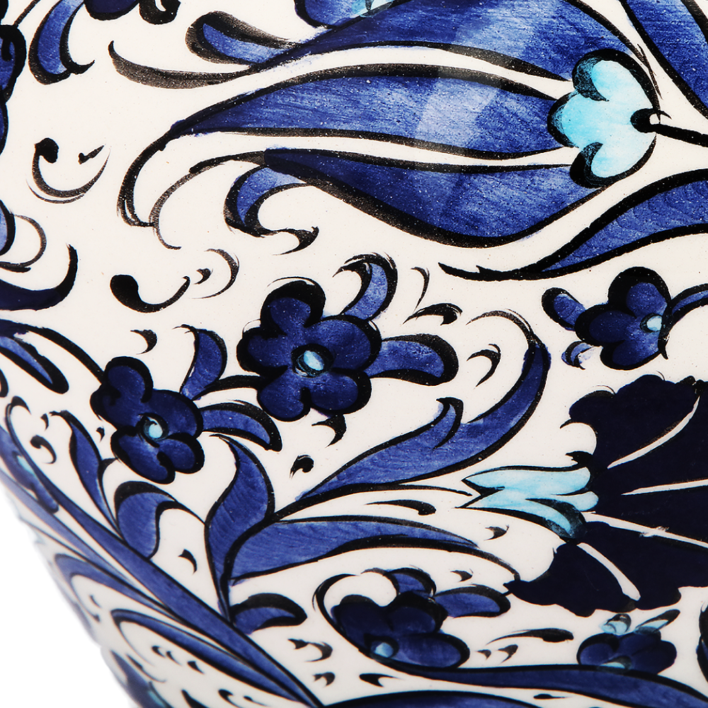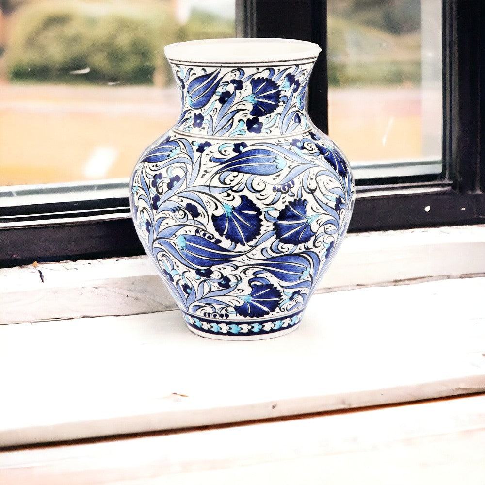 Bloom Nouveau Vase: Immerse in the elegance of the hand-painted 'Bloom Nouveau Vase,' where classic floral art meets modern decor. The vase's robust shape is adorned with sweeping blue florals, creating a fresh yet ti...