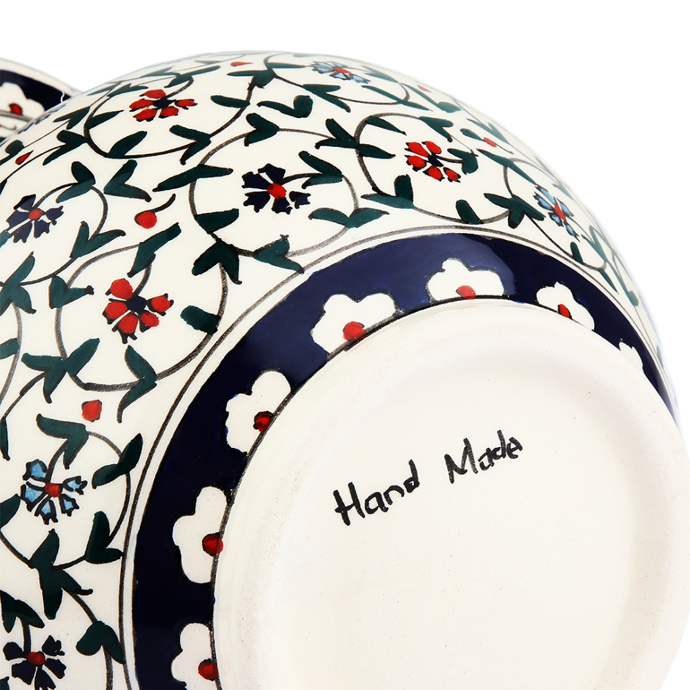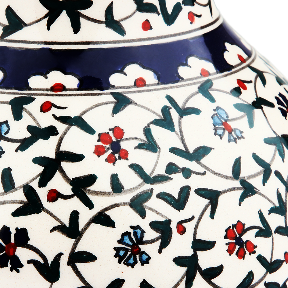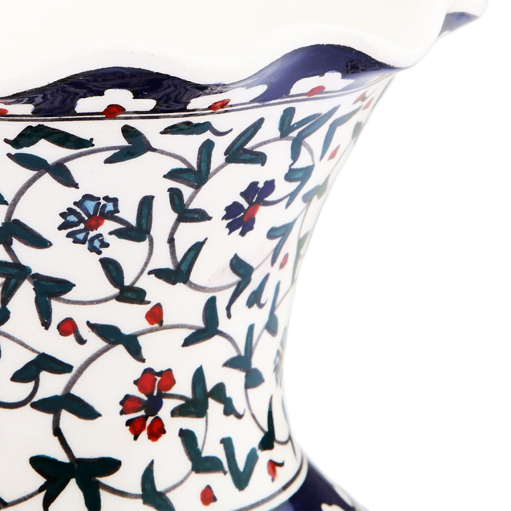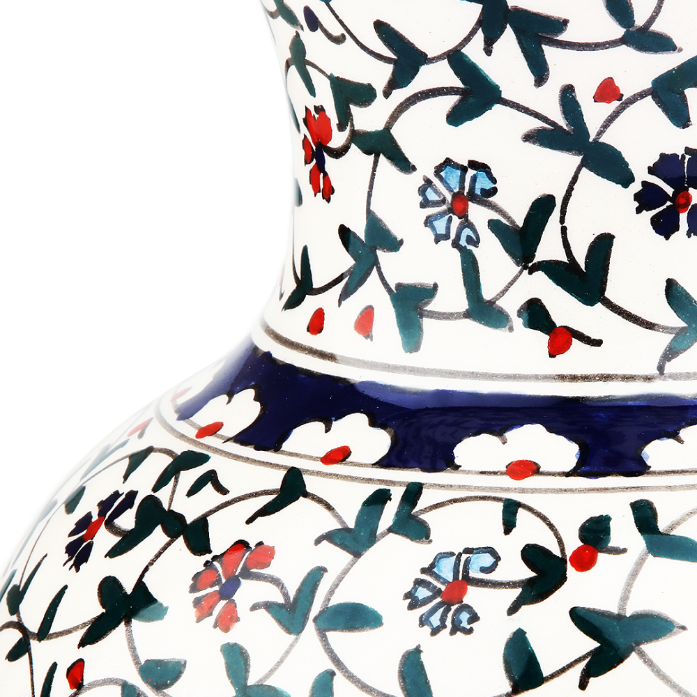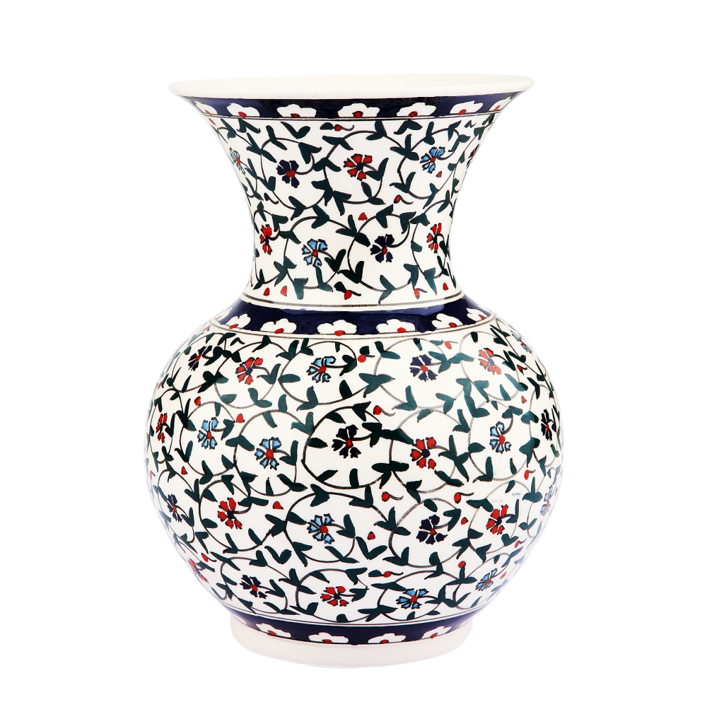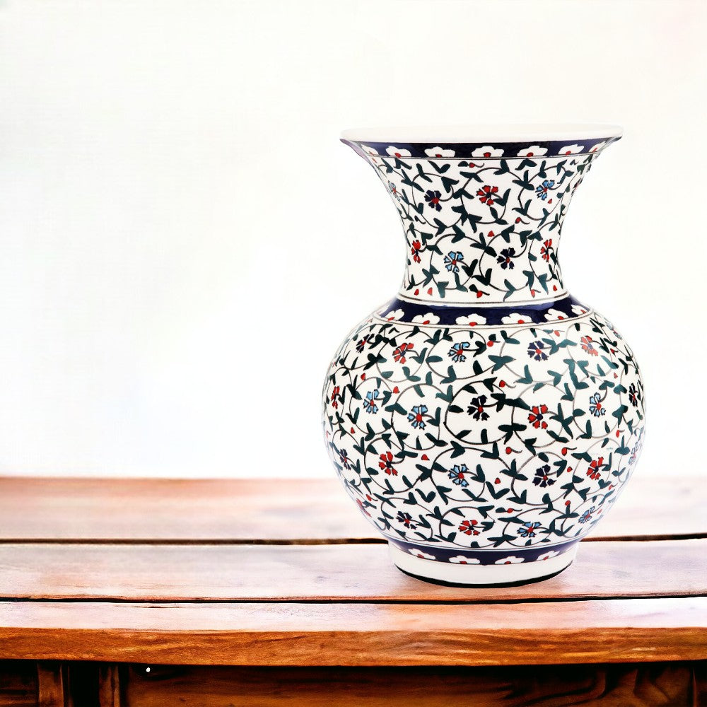 Floral Whispers Vase: A symphony of nature's charm captured in ceramic. This handcrafted vase is adorned with a delicate wildflower pattern, set against a crisp white backdrop. Ideal for a fresh bouquet or as a standa...