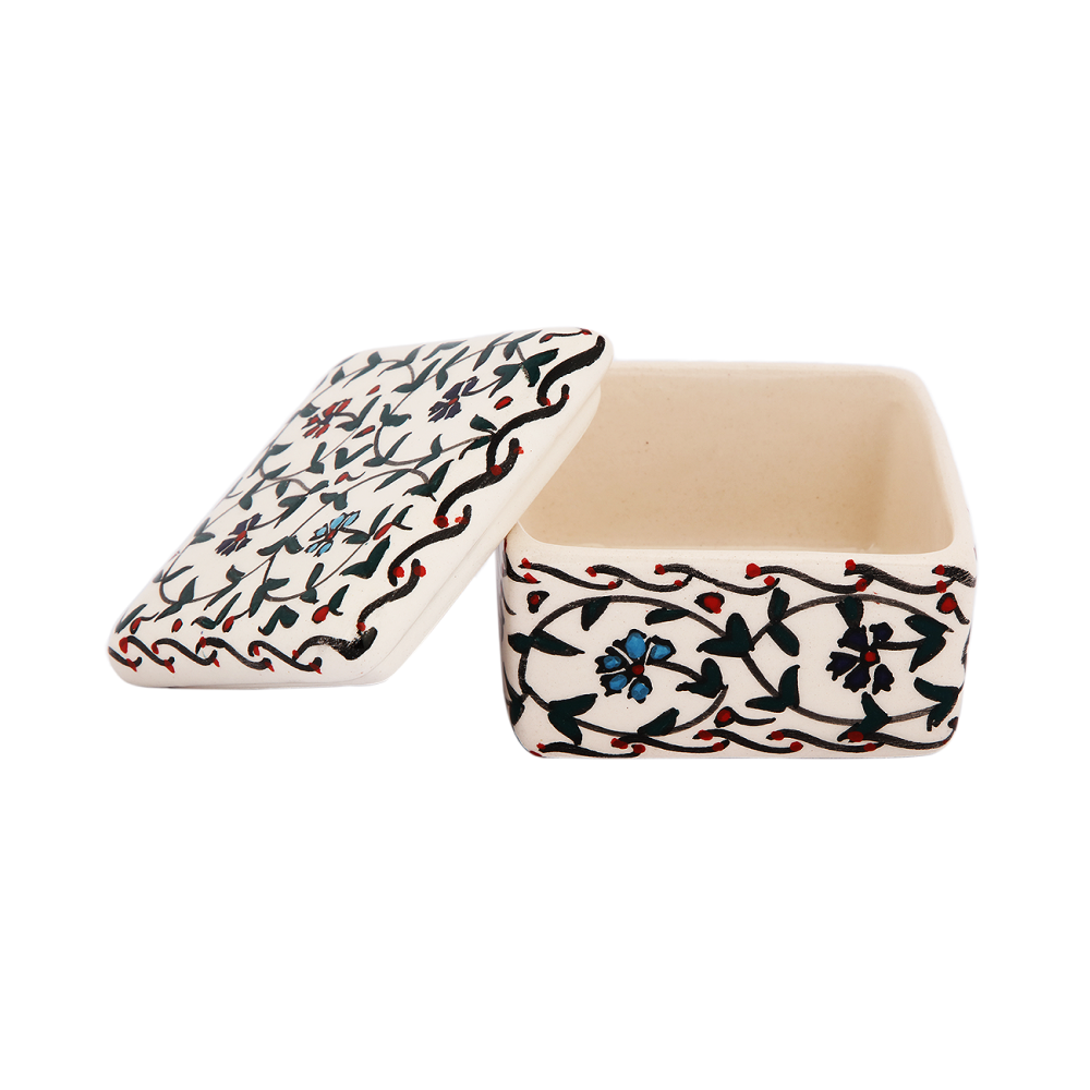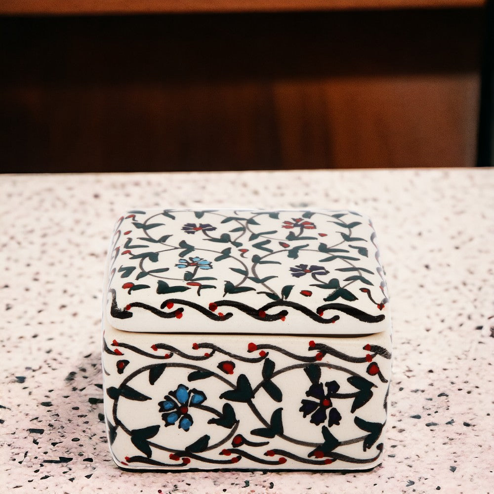 Celebrate artisanal beauty with our 'Midnight Vineyard' Handmade Ceramic Keepsake Box, where traditional craftsmanship meets botanical elegance. Skilled artisans meticulously hand-paint each sinuous vine and vibrant b...